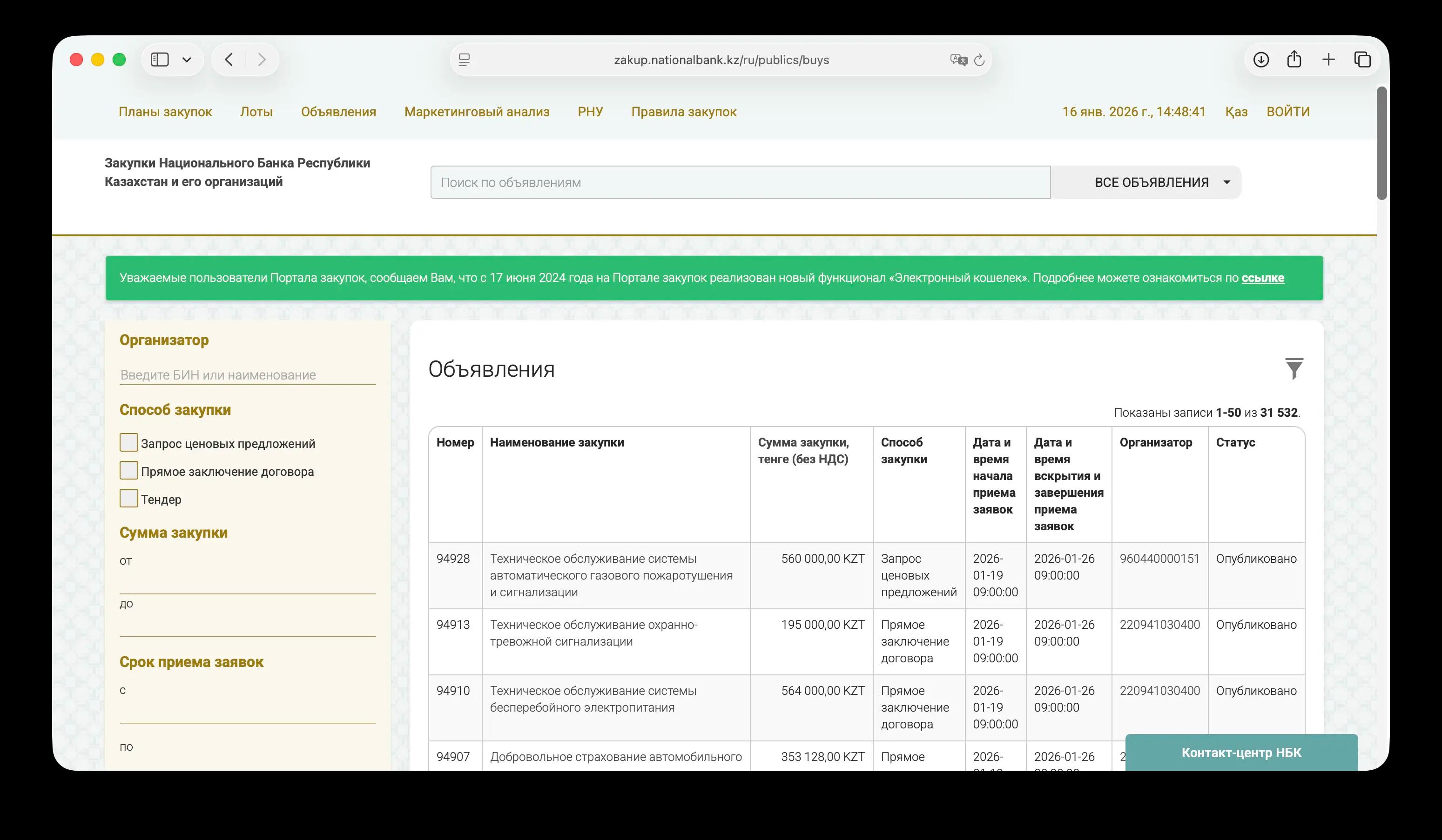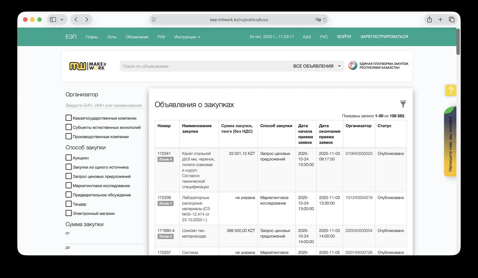 — готовая платформа для проведения онлайн‑закупок. Компания MITWORK утверждена Министерством финансов РК как официальный оператор закупок квазигосударственного сектора.40 вариантов закупок